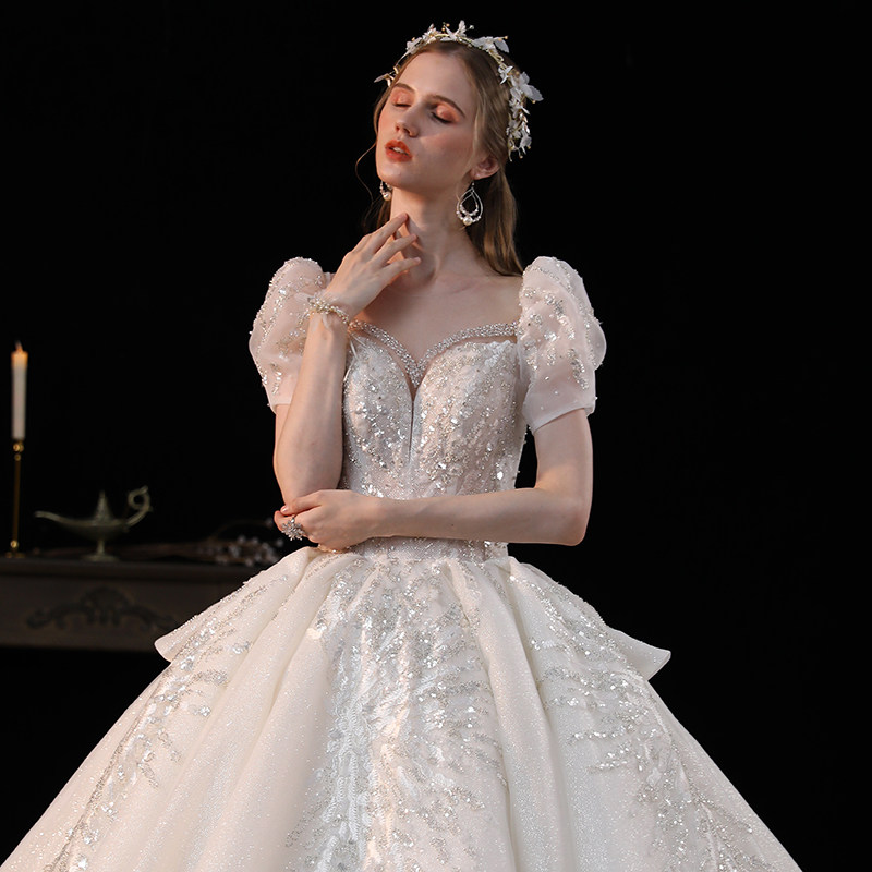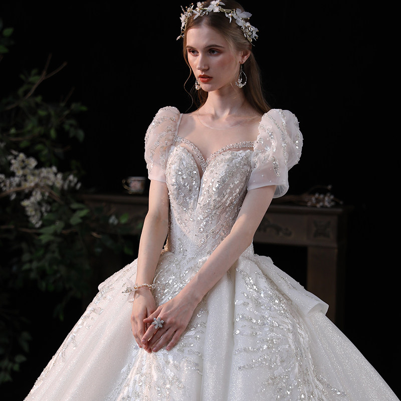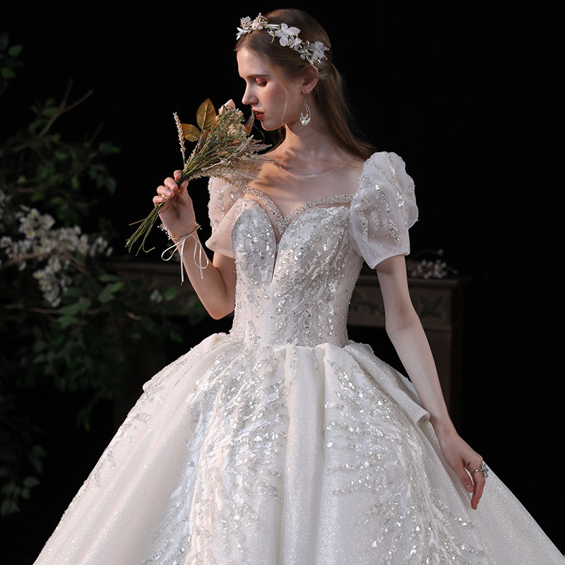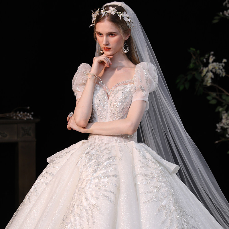 In the fugitive princess wedding dress 2022 new temperament bridal small man high-class sense of grand trail puff sleeves