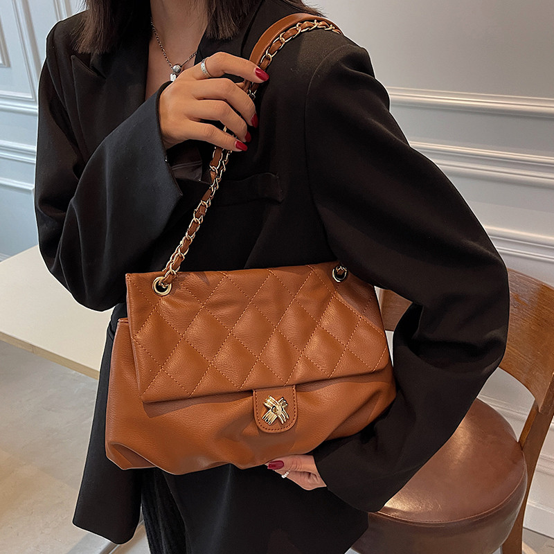 French ZAMP large-capacity bag women's 2022 premium sense of explosive diamond lattice chain one-shoulder cross-body bag autumn and winter bag