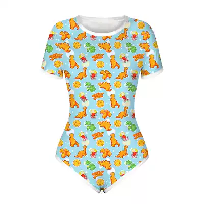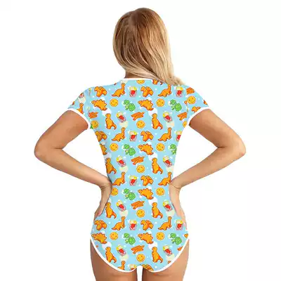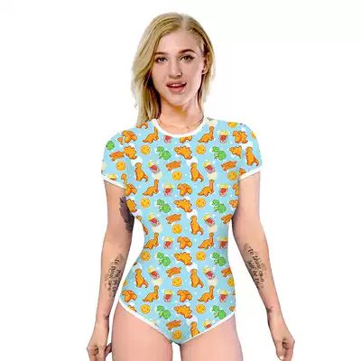 ABDL adult baby ha clothing teenage sky blue dinosaur one-piece crawl short sleeve triangle one-piece shirt