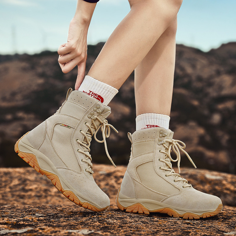 High-top outdoor hiking shoes men's waterproof non-slip wear-resistant cowhide lightweight breathable mountain climbing desert travel hiking women's boots