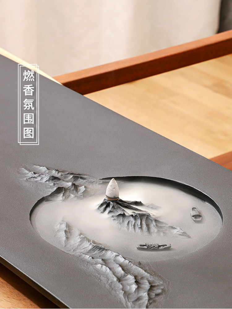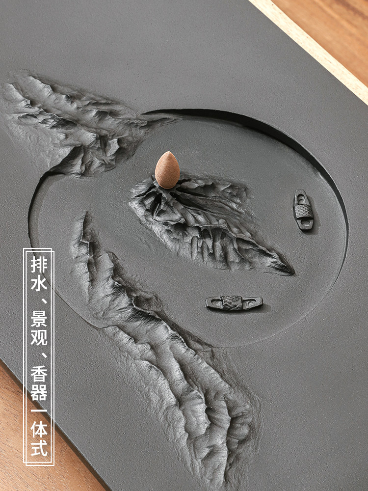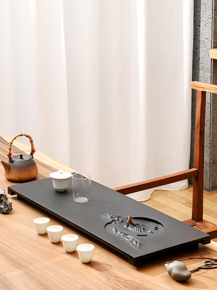 Natural whole piece of black gold stone tea tray large relief carving tea tray modern tea sea trumpet home simple drainage tea table