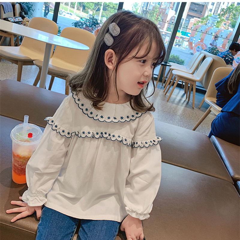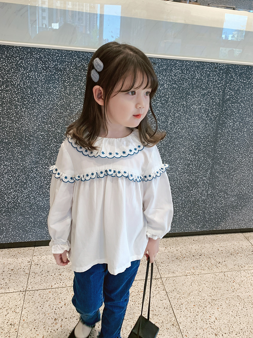 Children's clothing 2022 spring autumn new girl lotus leaf collar shirt female baby foreign pie long sleeve blouse children pure cotton shirt