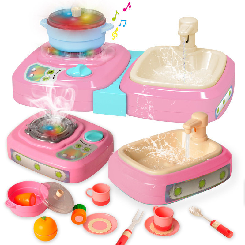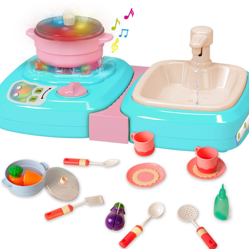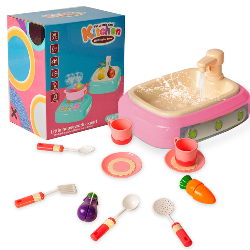 Children's electric spray wash basin spray stove girl pretends to be home wine simulation cooking, washing vegetables, kitchen appliances, tableware