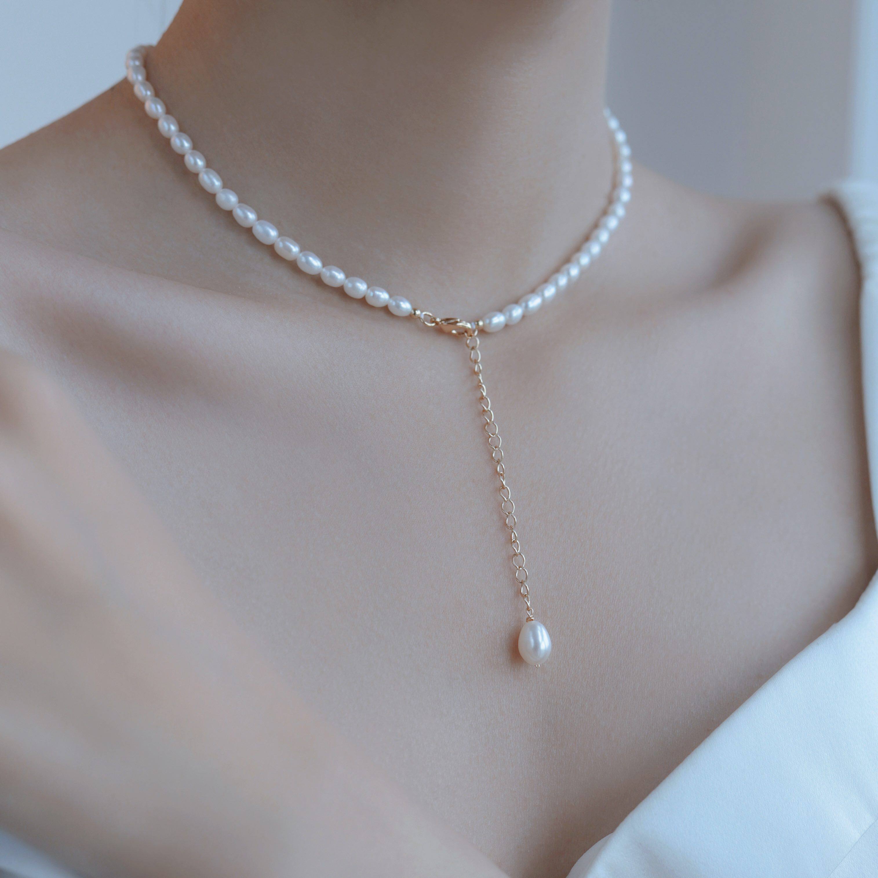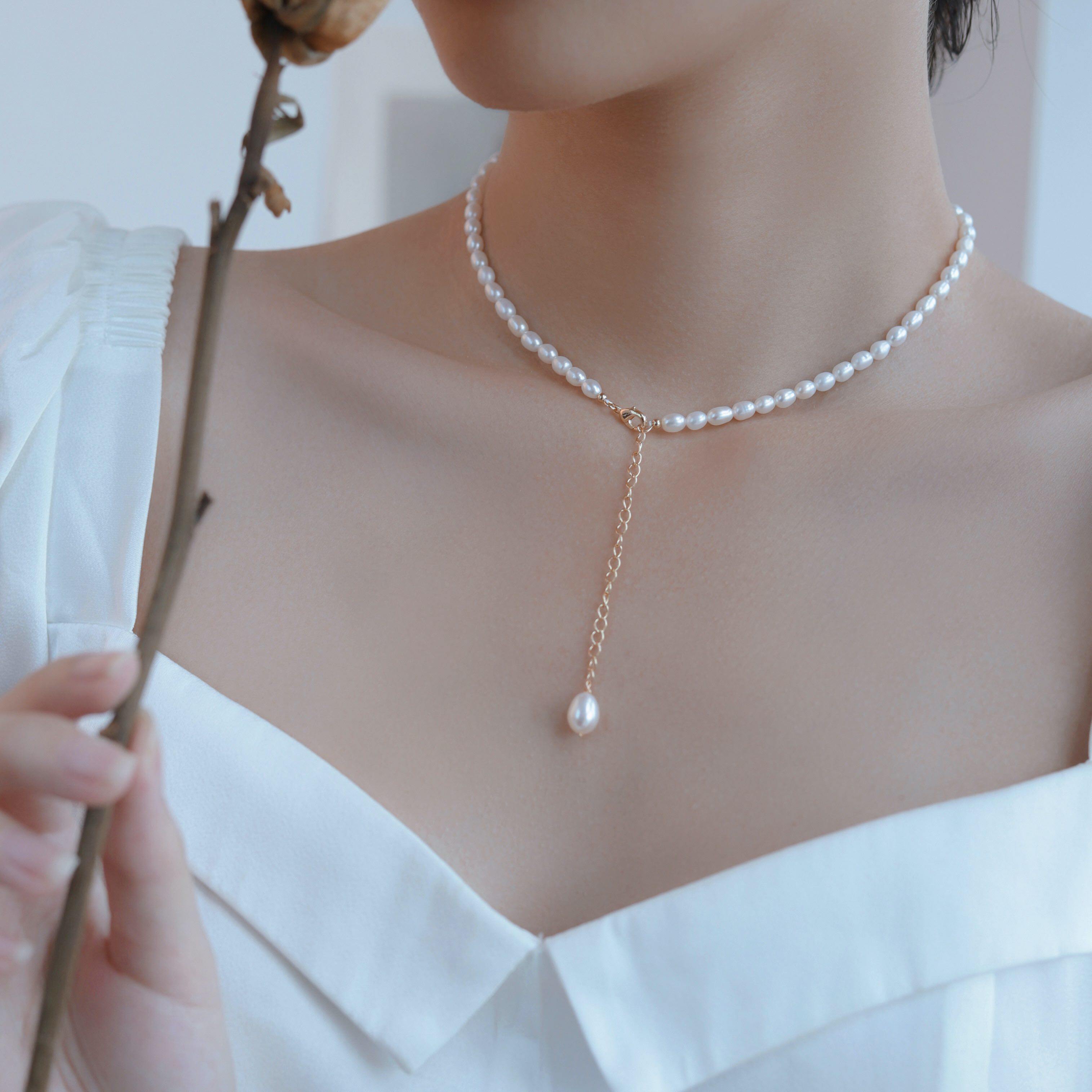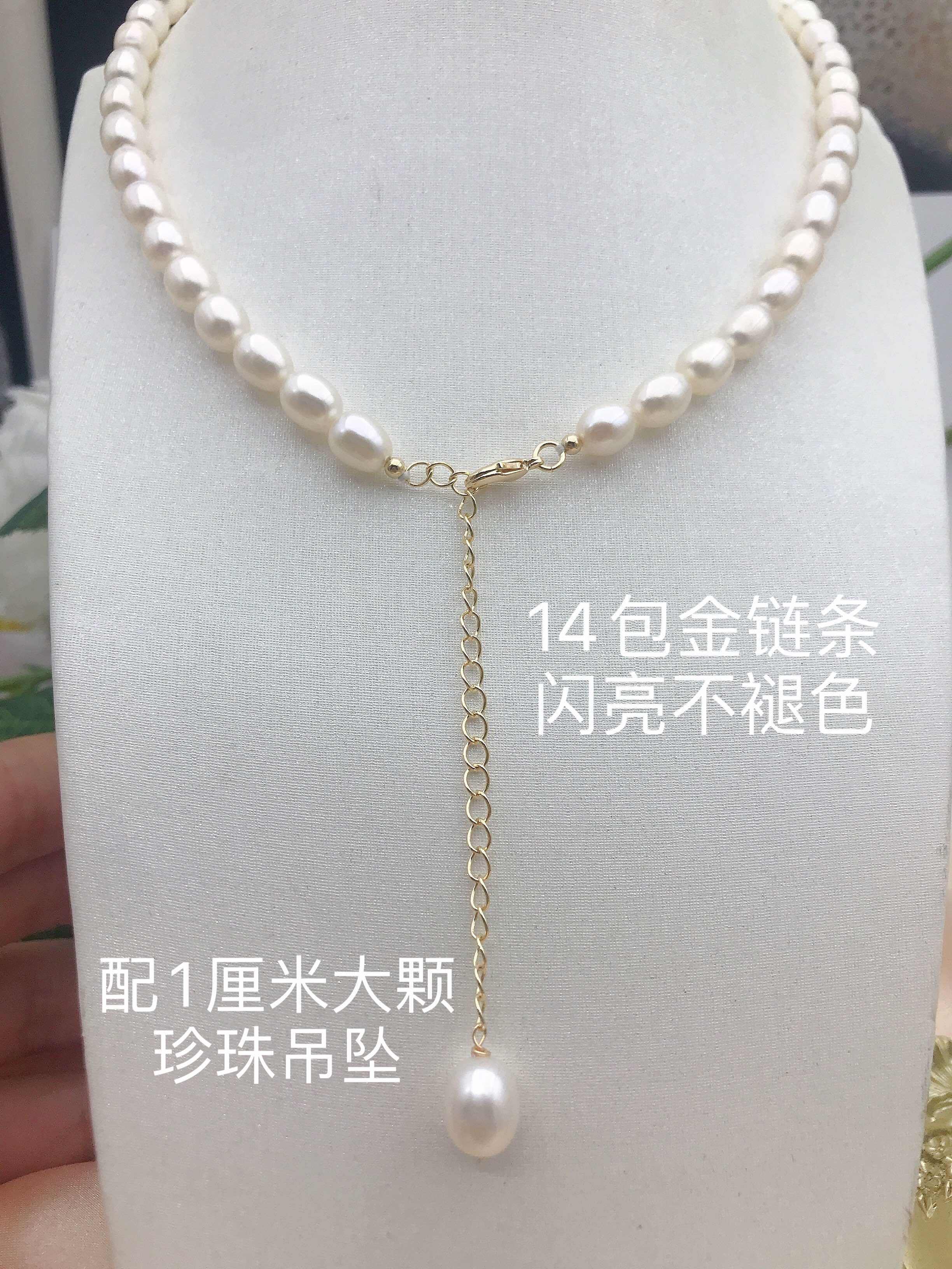 Millet grain pearl clavicle chain necklace female 14K gold simple temperament retro wild net red pendant necklace