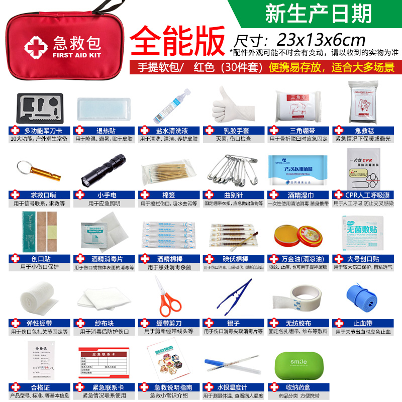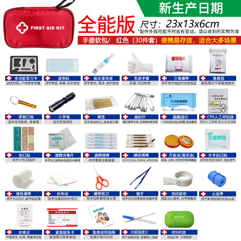 First Aid Kit Home Epidemic Prevention Emergency Portable Medical Kit Vehicle Medicine Kit Outdoor Earthquake Emergency Supplies 30-Piece Set