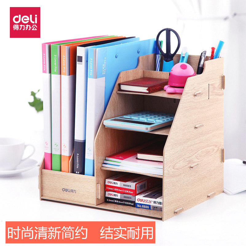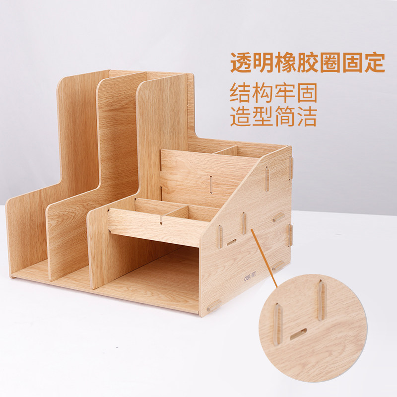 Wooden office file rack with pen holder file box drawer DIY pen holder storage box data finishing rack basket bookshelf finishing box wood grain book stand multi-layer folder storage box desktop