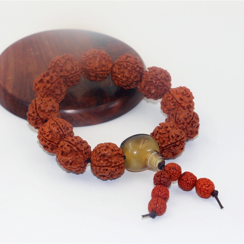 Nepal's high and dense red leather five petals bodice Bodhi Bodhi's hand to play the piece 19 mm Buddha Pearl for the men 's