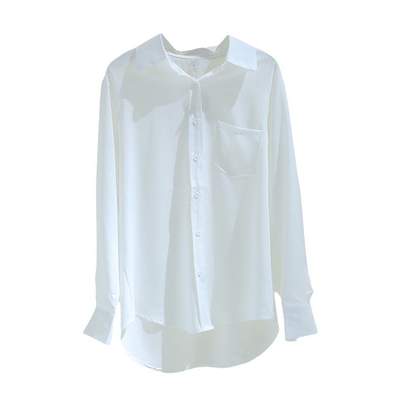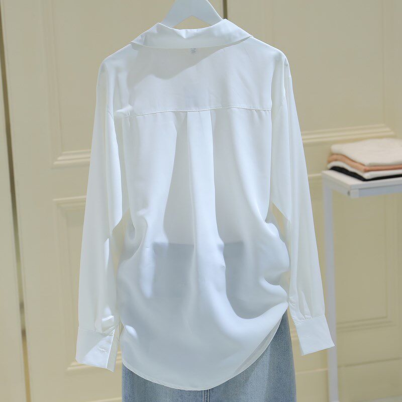 Hong Kong white shirt women's long-sleeved chiffon 2022 spring new thin French loose all-match lapel professional shirt