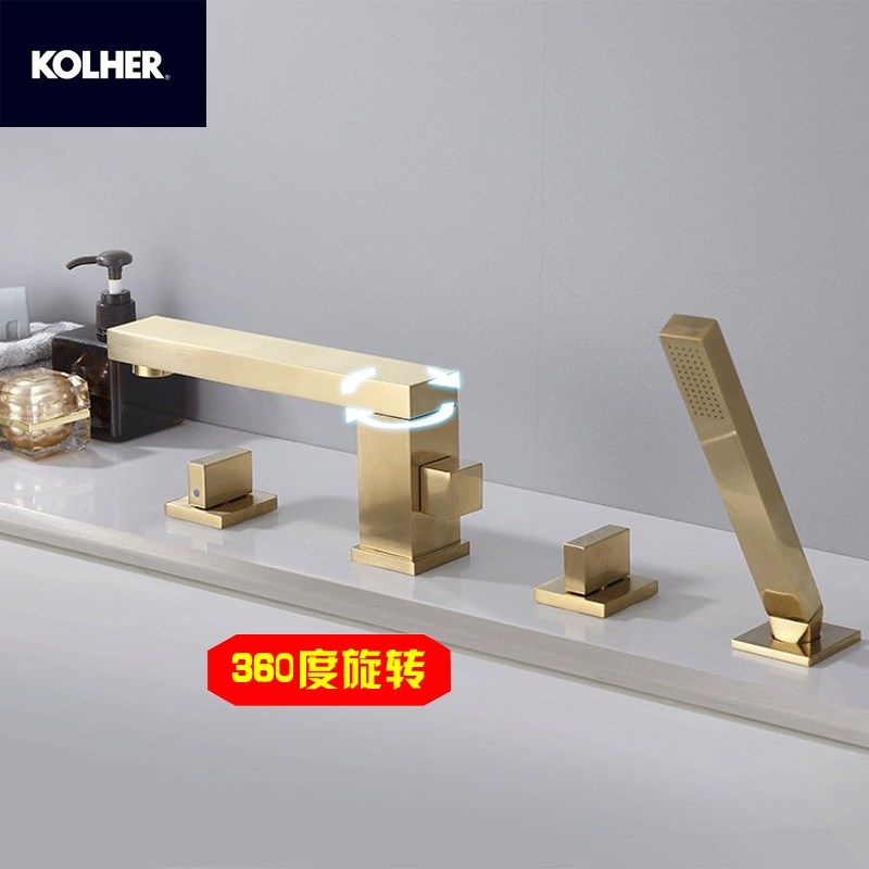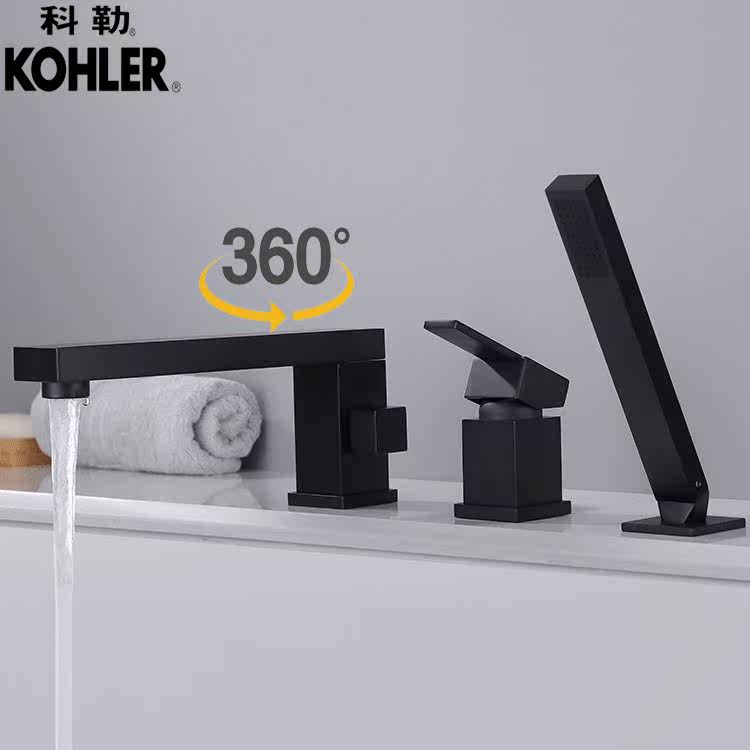 Golden black bathtub tap rotary waterfall Two-type bathtub cylinder side tap suit