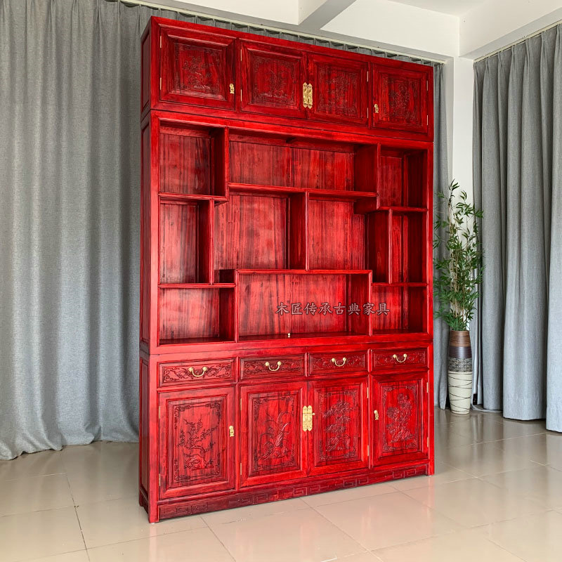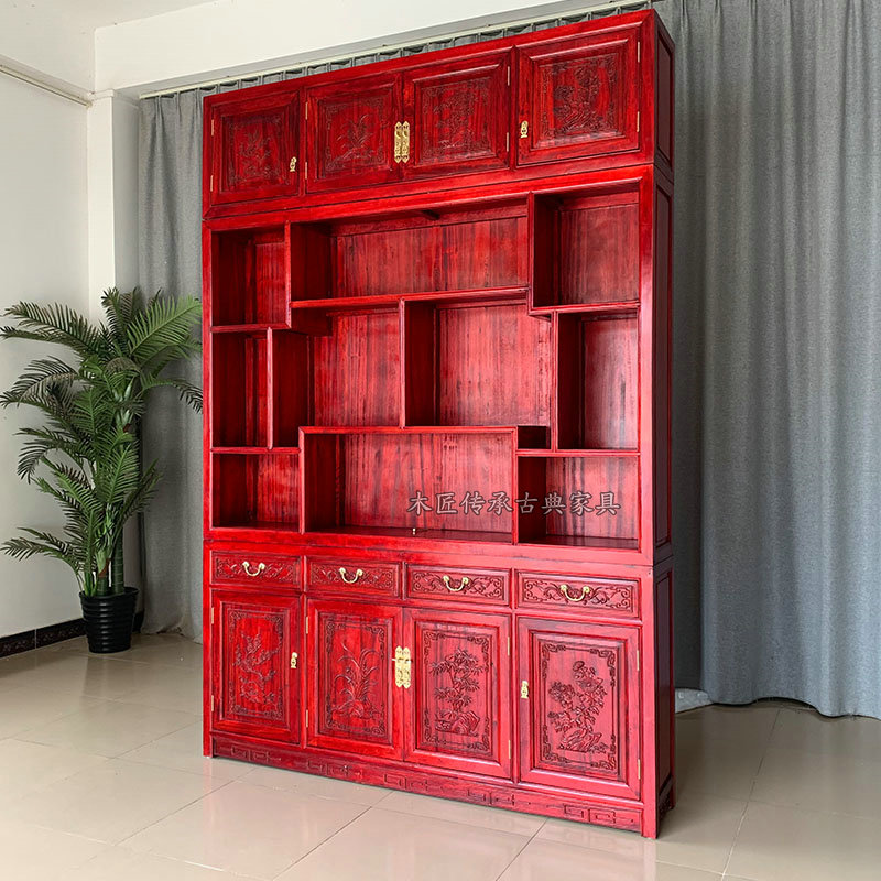 Solid wood Bogu frame full fragrant camphor wood Duobao Pavilion entry into the home against the wall porch cabinet Chinese-style living room compartment locker customization