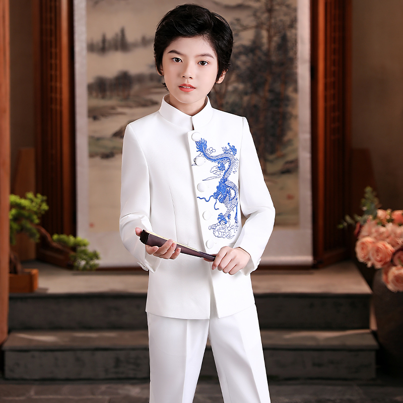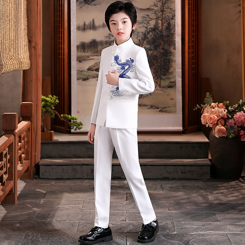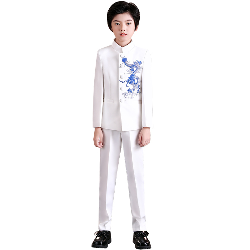 Blue Dragon and White Two Piece Suit Pants Blue Dragon White Three Piece Suit Pants Shirt Red Dragon White Two Piece Suit Pants Red Dragon White Three Piece Suit Pants Shirt