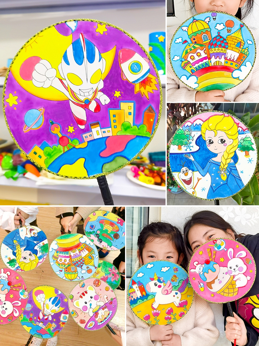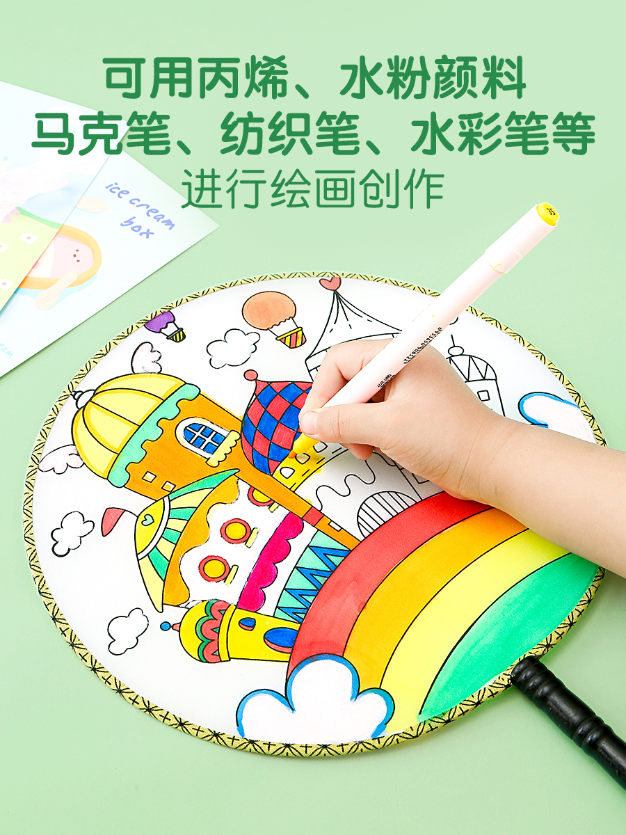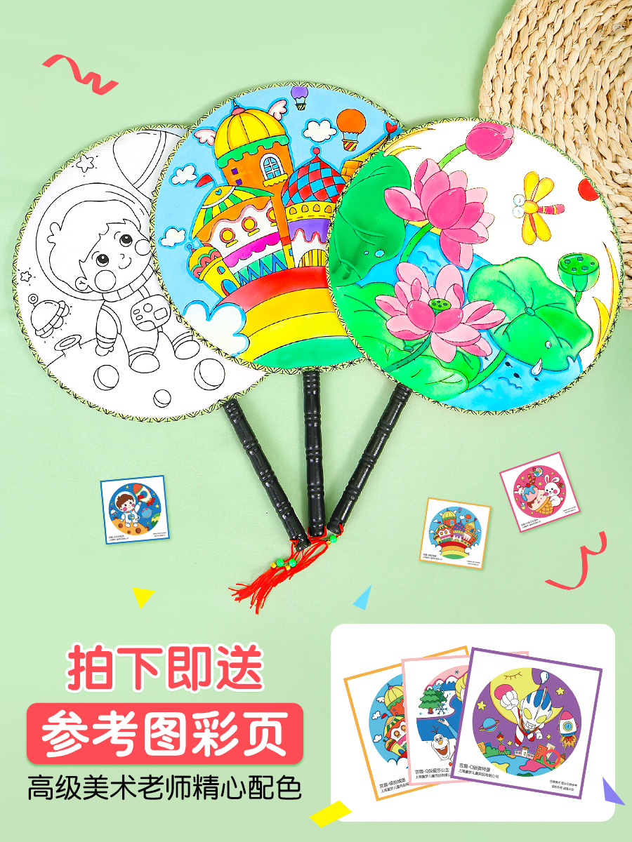 Children's painting group fan diy pigment watercolor painting coloring fan practical kindergarten art creative production materials