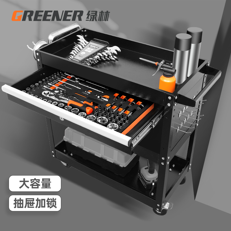 Green Forest Tool Car Small Cart Steam Repair Repair Mobile Tool Cabinet Heavy Multifunction Triple Layer Workshop With Hand Push Box-Taobao
