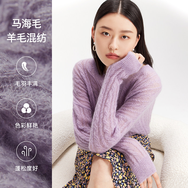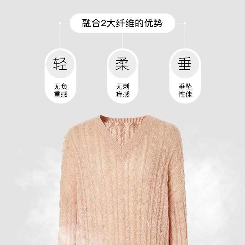 Dissaines V-led knit cardio-hoodie 2021 spring autumn new loose gallows with lazy wind and thin fur of the Mahai fur coat