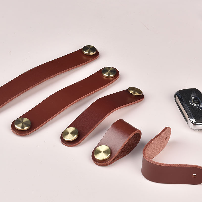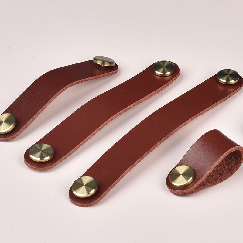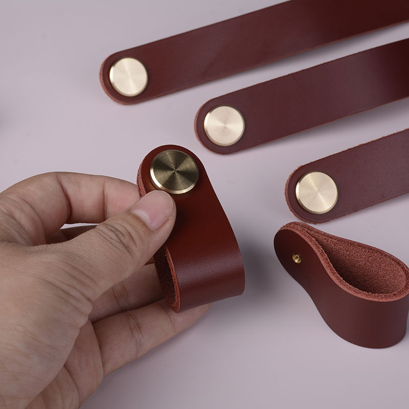 Red-brown real-cow piercing handle Northern European tatami closet door drawer head skin door handle child collision prevention