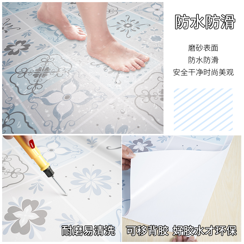 Makeup Room Waterproof Floor Sticker Floor Tile Ground Renovation Sticker Self-Adhesive Tile Anti Slip Wear and wear toilet bathroom floor sticker