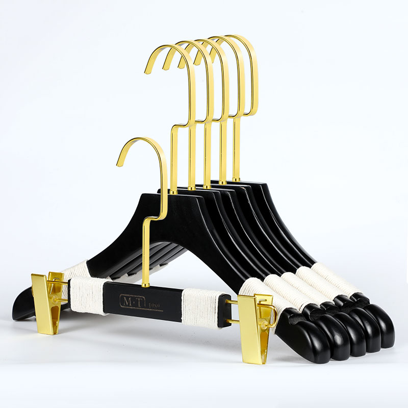 Black clothing store special wood wood pants clip adult anti-slip hanging clothes bracket customized logo