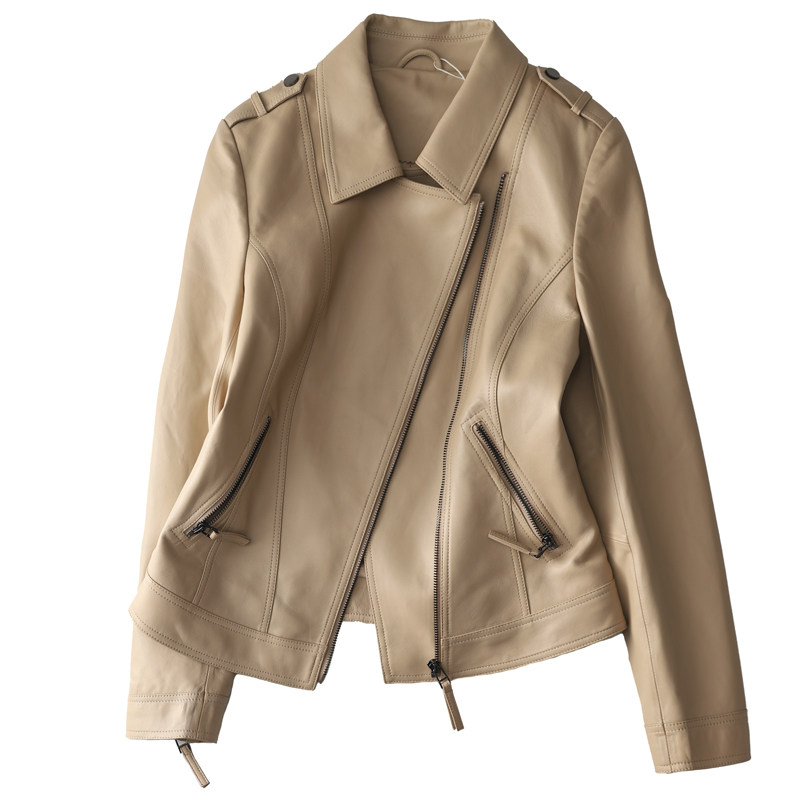 2 DIEL House Fashion Classic Skew Door Flap Soft Little Sheepskin Locomotive Leather Coat Jacket Lady Spring Autumn EGPY41378