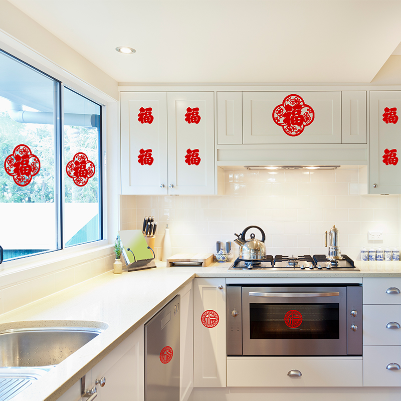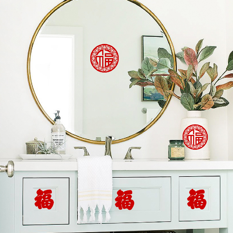 Small fortune stickers moved to new homes New year decoration blessing words door stickers glass window grilles small blessing characters moved into the house window flower stickers