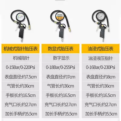 Automobile tire pressure gauge, auto repair shop, high-precision tire pressure gauge measurement and detection plus inflatable gun head tire pressure gauge