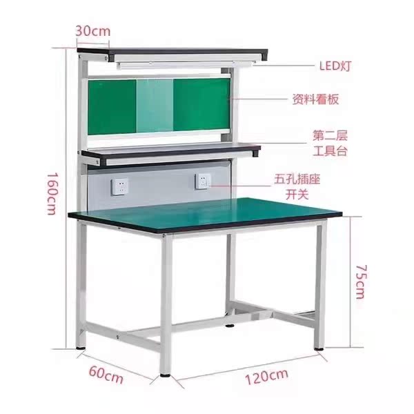 Customized anti-static workstation workshop operator mobile phone computer detection table with lamp double layer test table