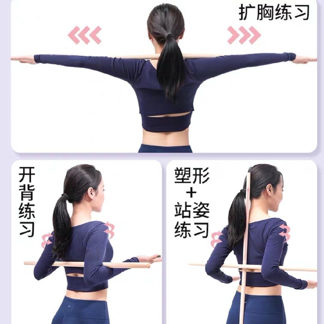 Yoga body stick with shoulder back stick for correcting humpback round bar Dance Assisted Wooden Stick Model Standing Posture Correction Trainer