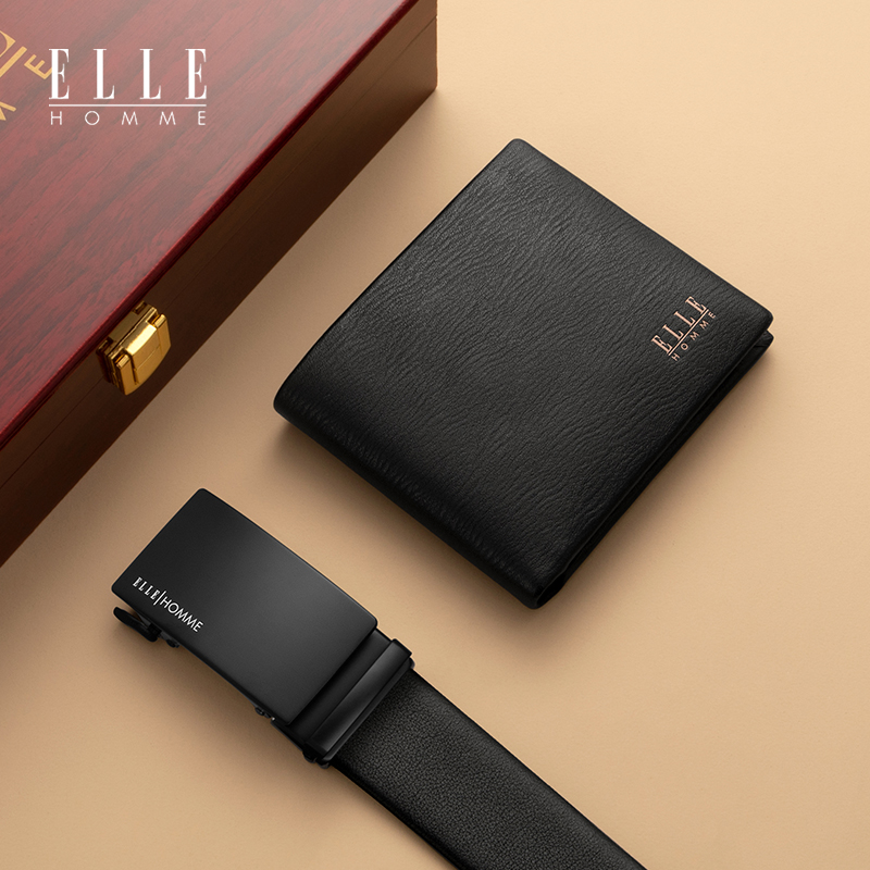 French ELLE HOMME men's wallet men's leather 2021 new automatic buckle belt strap man money clip leather clip