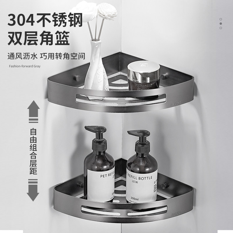 Gun grey bathroom stand 304 stainless steel toilet holds wall hanging bathroom corner frame without punching