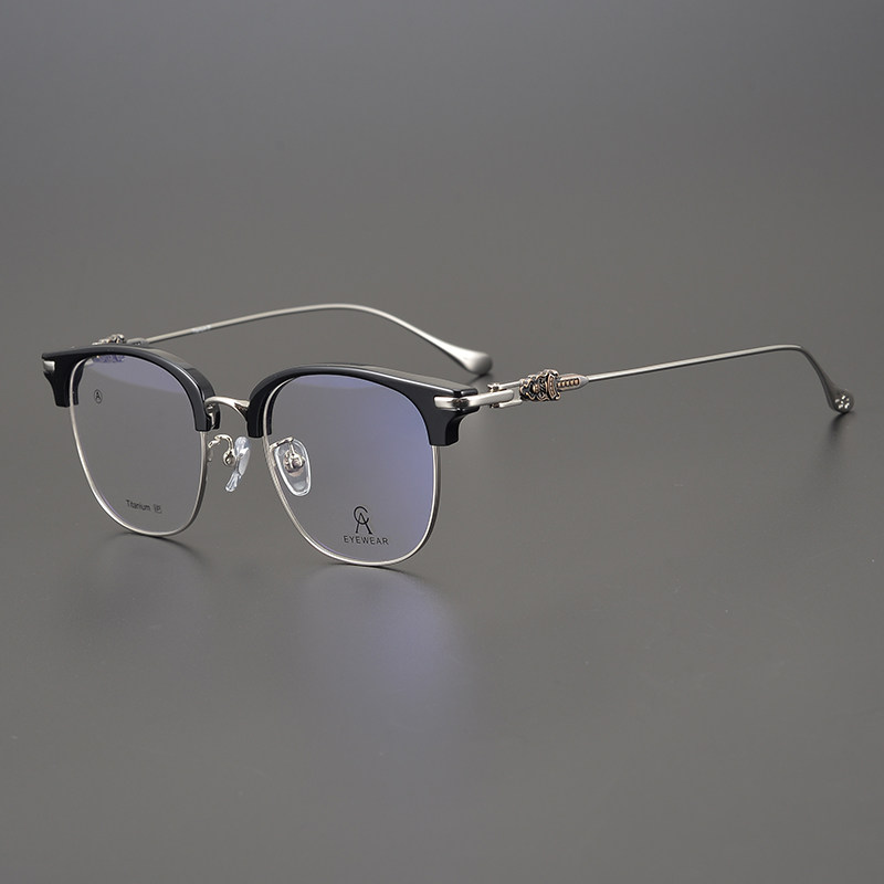 Retro glasses frame ultra light pure titanium semi-box size face can be matched with myopia male and female models anti-blue black appearance thin