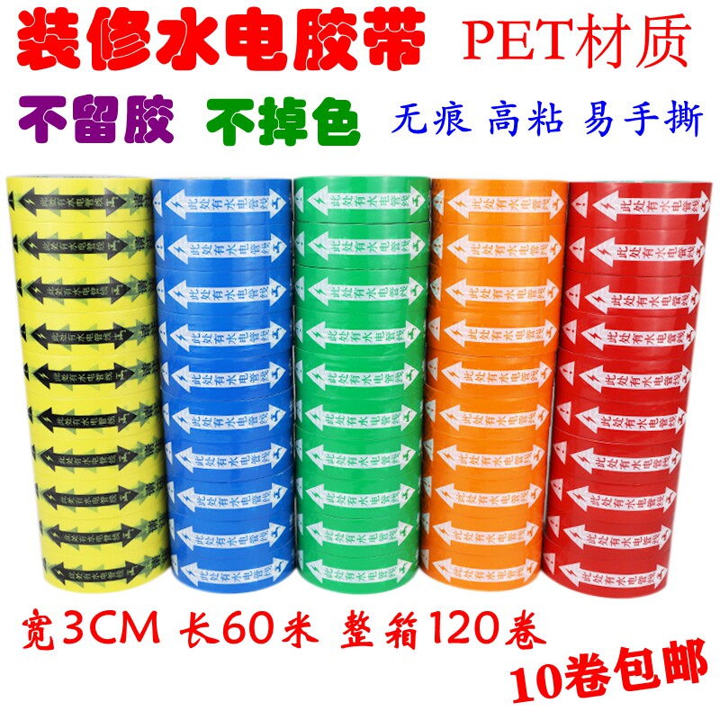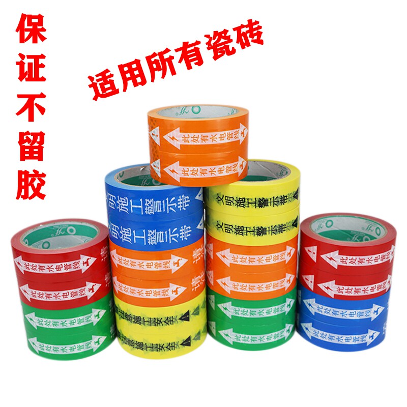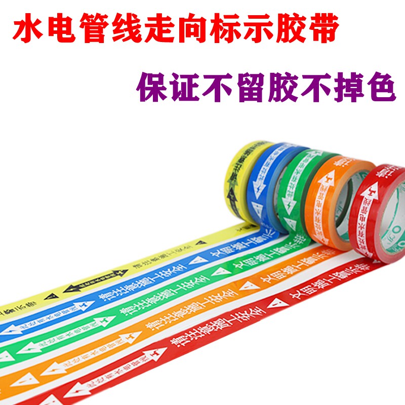 Decoration site water and electricity pipeline direction sign warning tape safety protection sign paste wide color tape custom