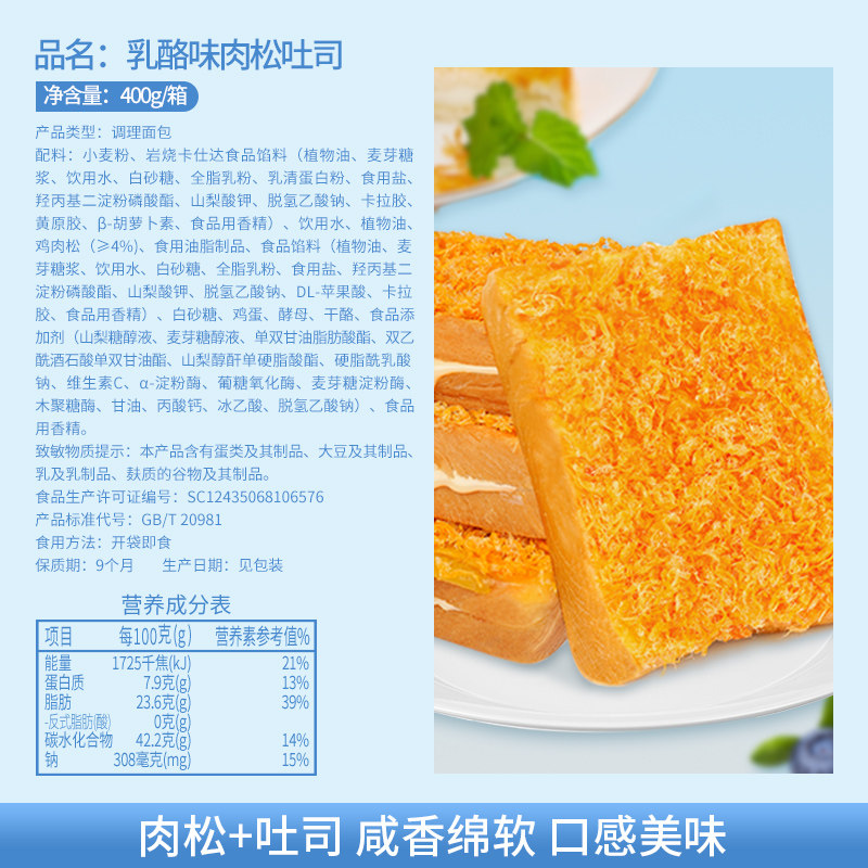 Dairy Meat Pine Toast 400g Send 400g (Fat 800g whole box) (hot sell recommended) Dairy Meat Pine Toast 800g send 800g (2 boxes only 34 8) (volume is more affordable