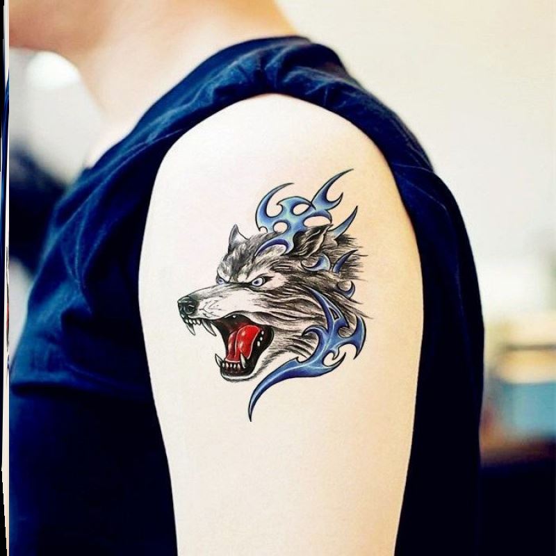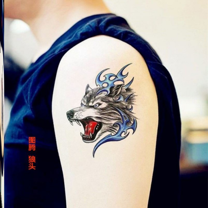3pcs* Douyin same style wolf head durable waterproof tattoo stickers men's chest domineering male and female arm flower arm tattoo stickers