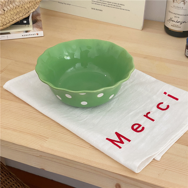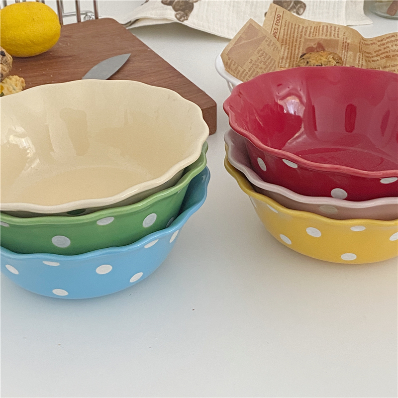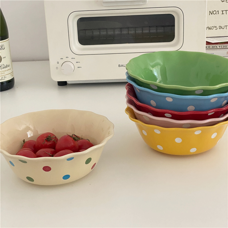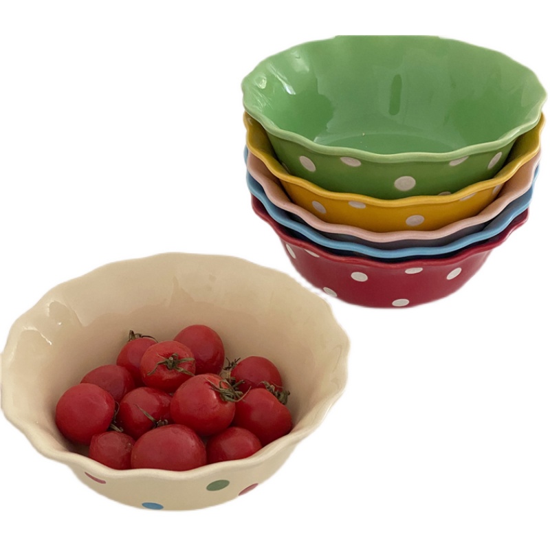 Po-Han Feng ins Cute Color Lace Dot Bowl Yogurt Breakfast Fruit Bowl One Person Eating Ceramic Salad Bowl