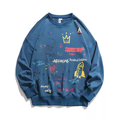 FANGXIAOJIE Tide brand fun graffiti print long sleeve hip hop loose bf wind couple casual thick cotton men and women