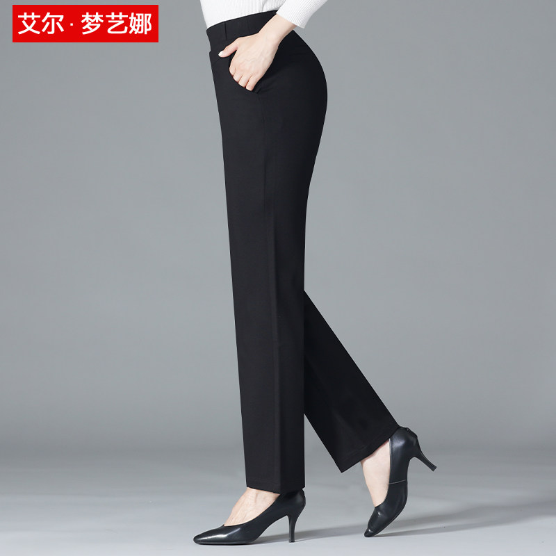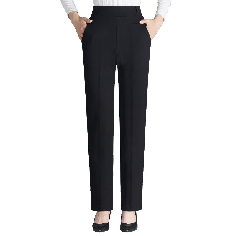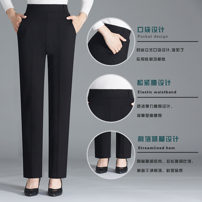 Middle Aged Lady Mother Pants Spring Autumn New Black Middle Aged Woman Casual High Waist Straight Barrel Loose Long Pants Woman