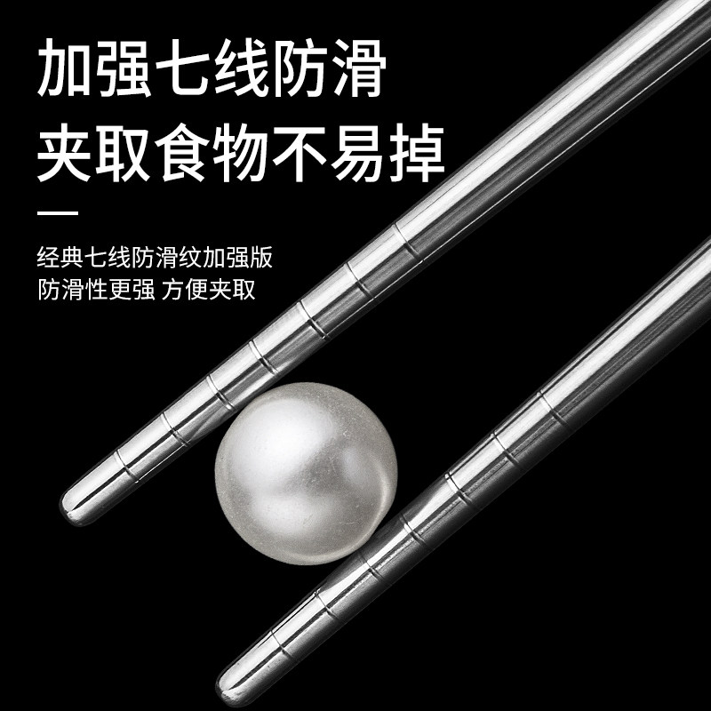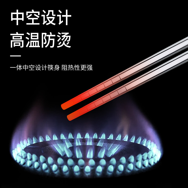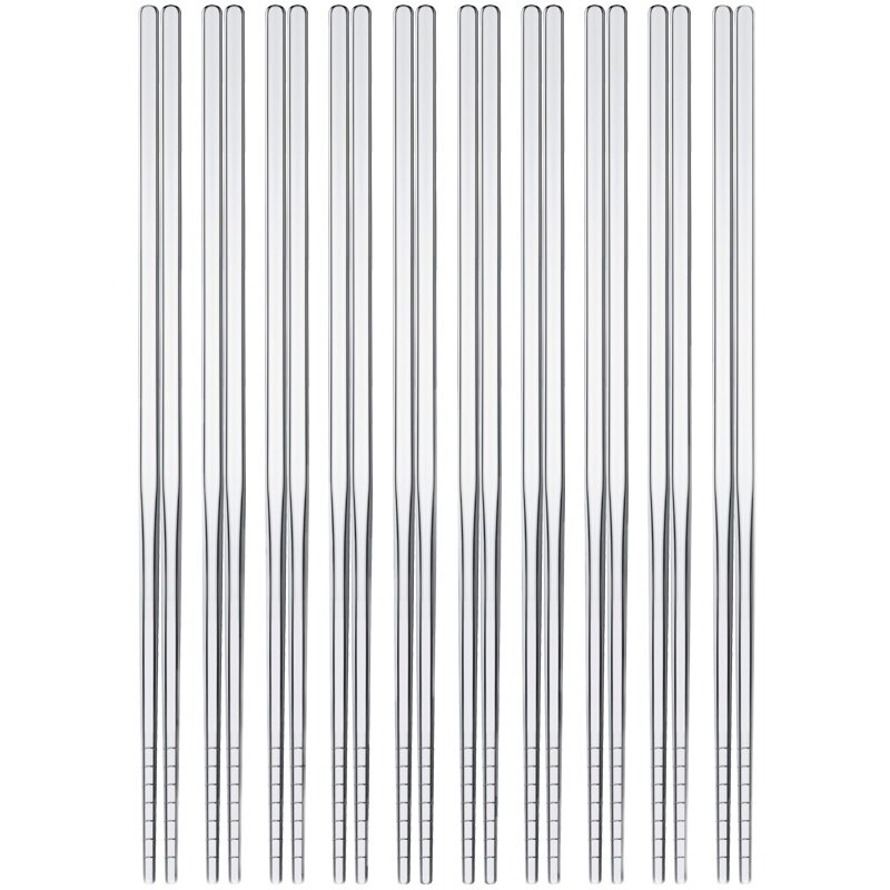 Stainless Steel Chopsticks Domestic Hotel Anti-Slip Anti-Burn Square Metal Chopsticks Silver Iron Fast Sub High-end 10 Double Family Suit