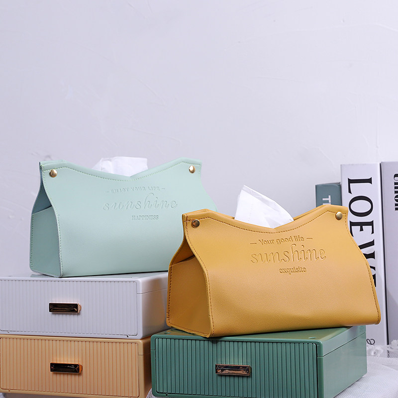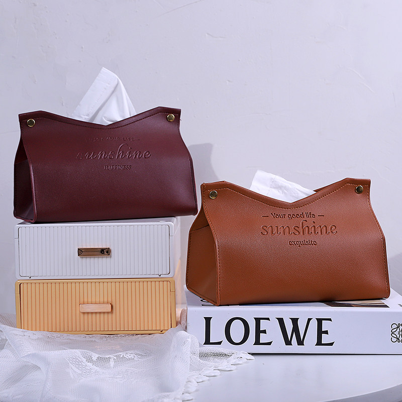 Leather Tissue Box Mesh Red Creativity Light Luxury Home Living Room On-board Toilet Paper Box Nordic Ins Napkins Contain box