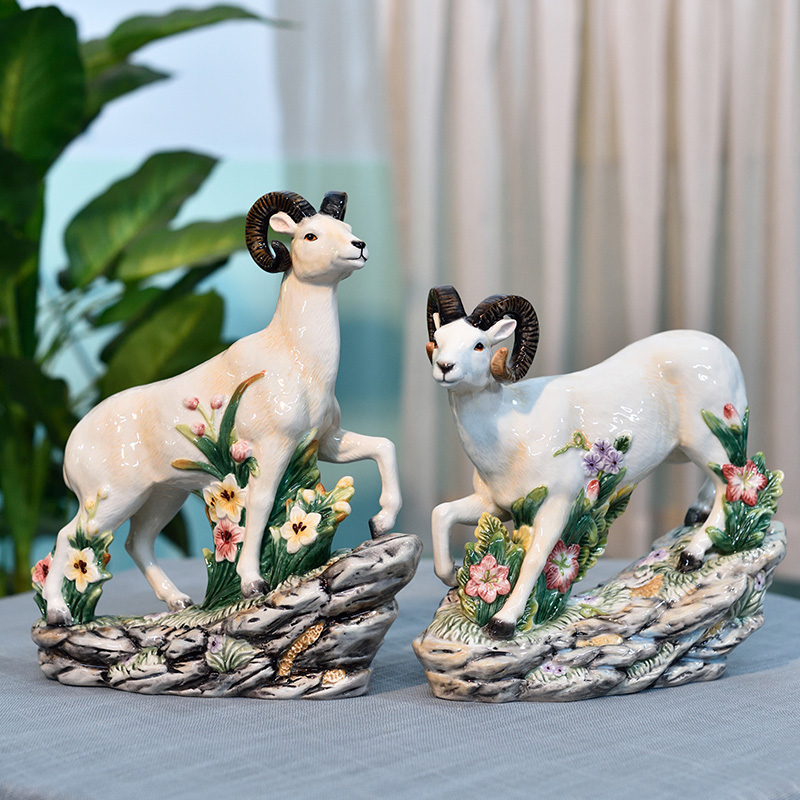 Goat Goat 100 million Ceramic home Desktop Pendulum Pieces Pair Goat Goat Adornment Couple Pair of Goat Personality Gifts