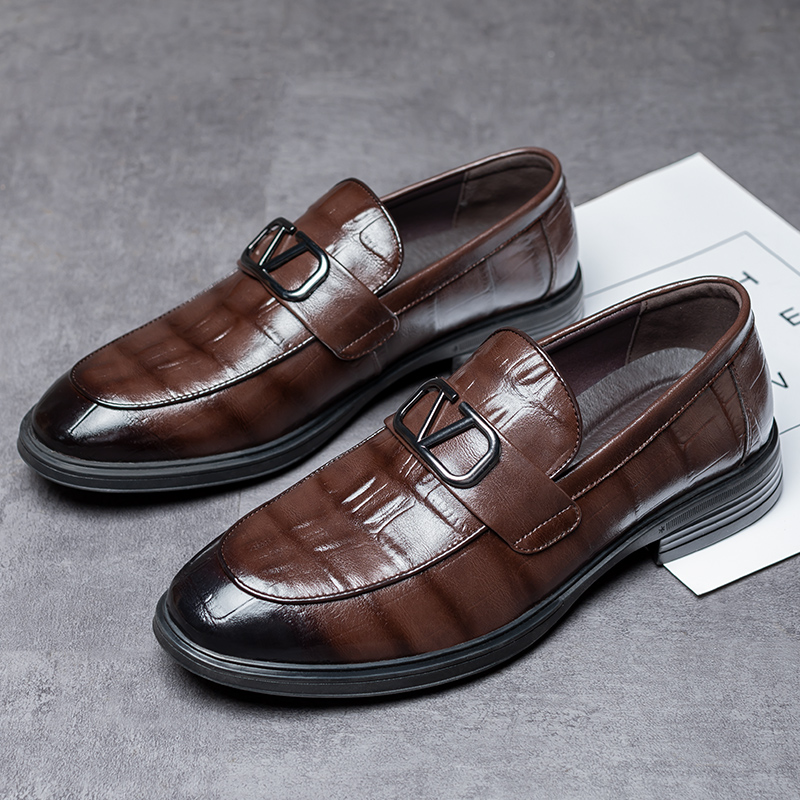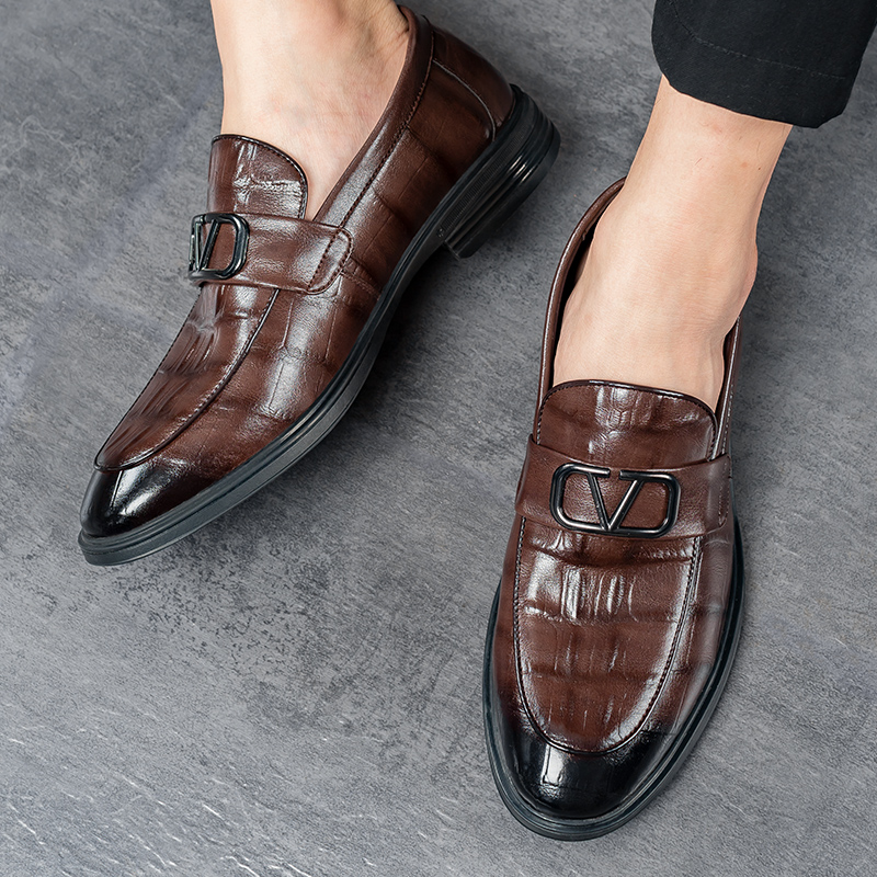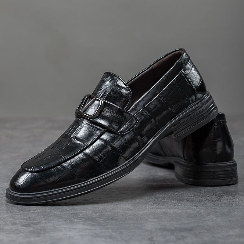 Leather shoes men's 2021 fall new light and thin thickened casual black Inn Wind trendy business is loading the bean-bean shoes