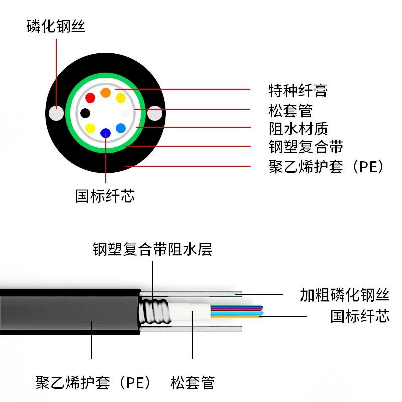 APESD outdoor multimode gigabit armored fiber optic cable 4 6 8 12 24-core central beam tube type GYXTW national standard
