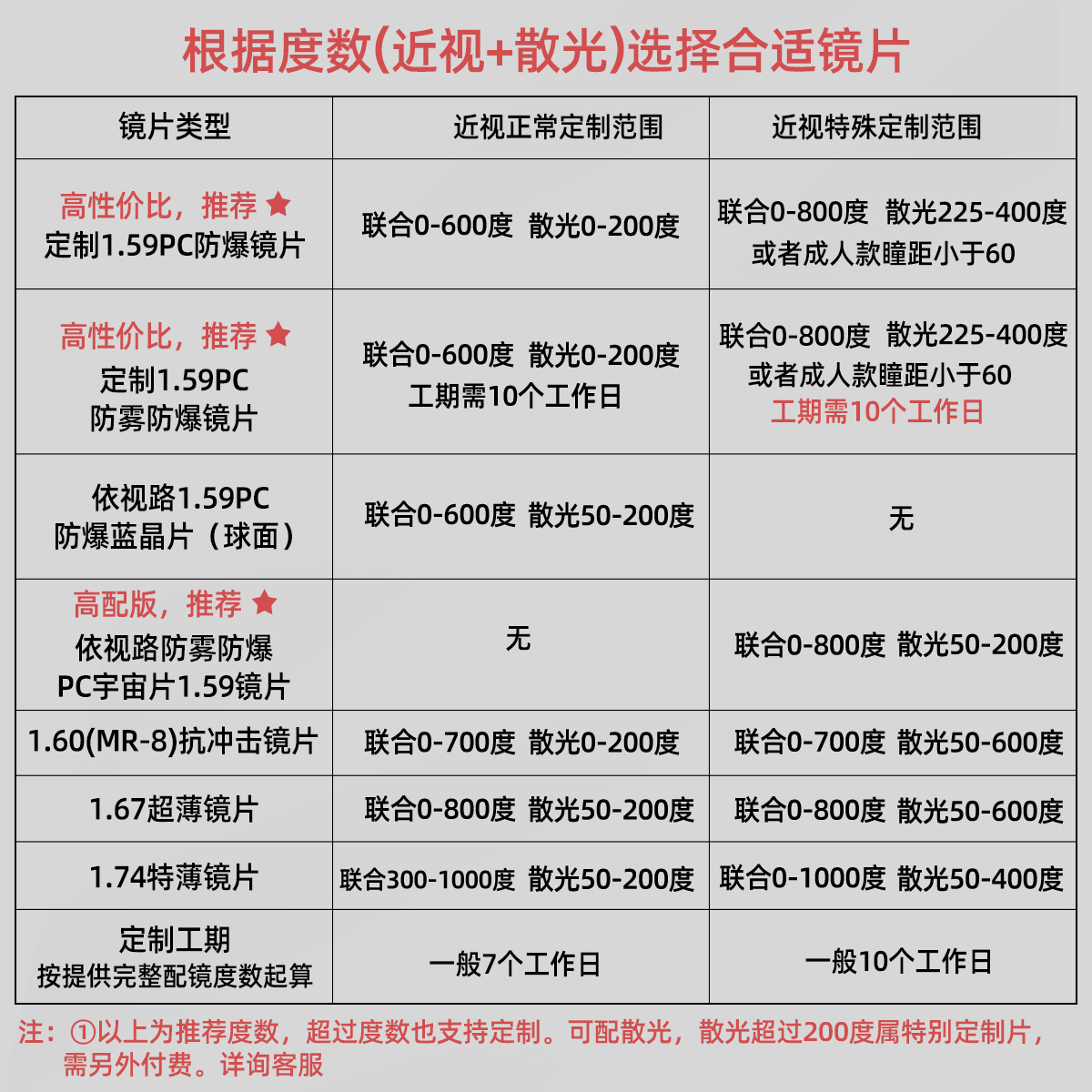 Seven days free test of the glasses processing QS guarantee