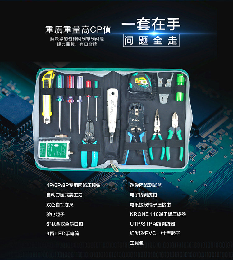 Taiwan Baoworkers PK-4013 Internet Maintenance Tool Group Sets Electronic Telecom Computer Maintenance Combined Network Route Press Wire Pliers