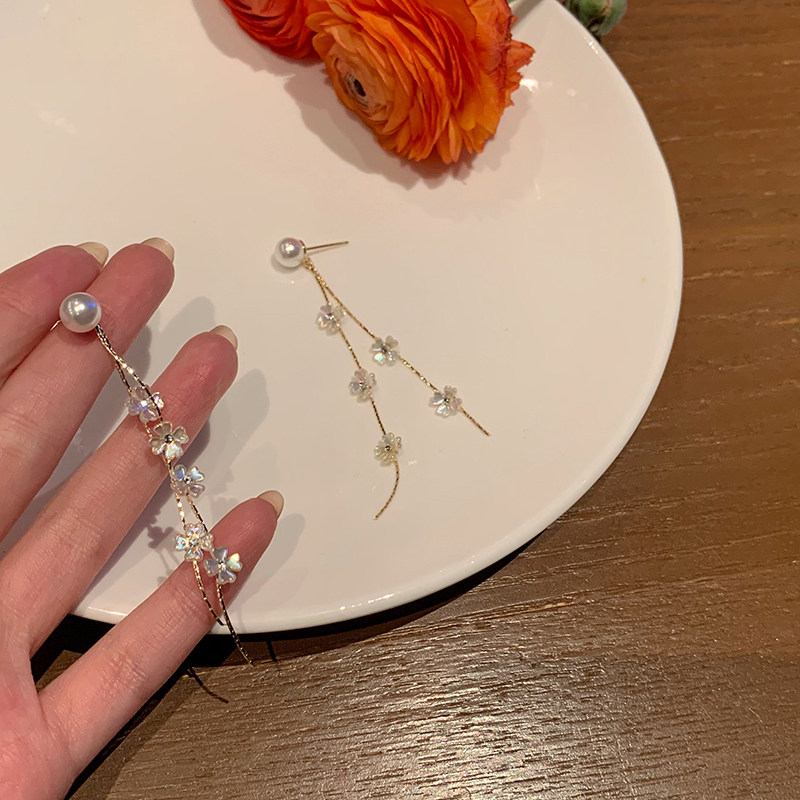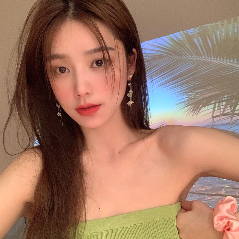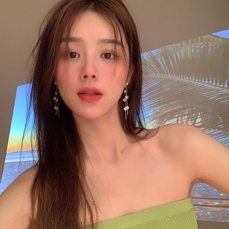 In 2021, new ear - decorated long - edition light luxury flower flower Su earrings of simple fashion high - speed high - sensory ear crash