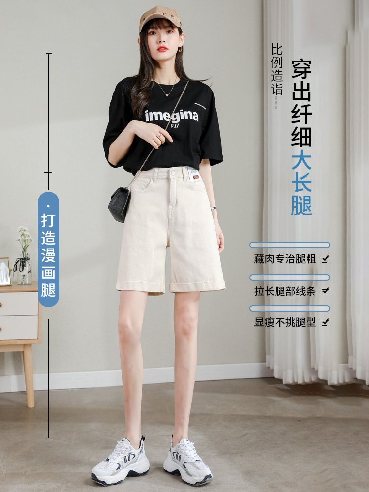 La Chapelle denim five-point shorts women's summer thin high-waisted thin loose straight wide-leg all-match five-point pants ins tide