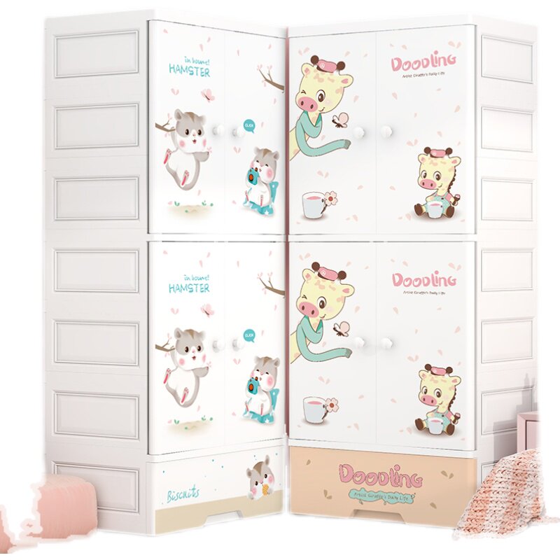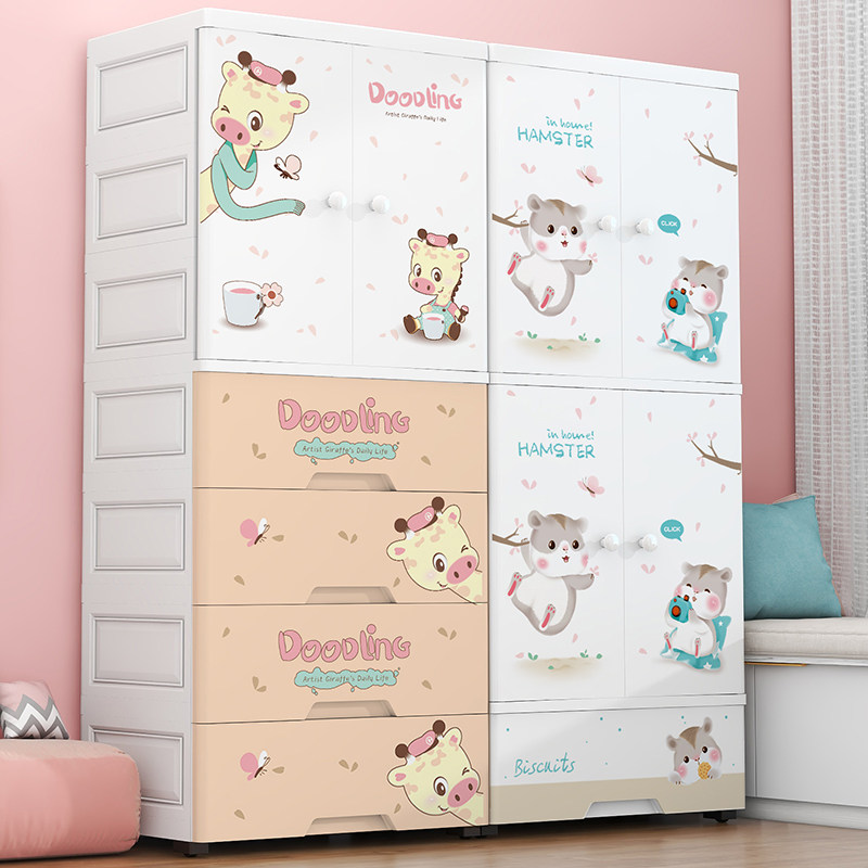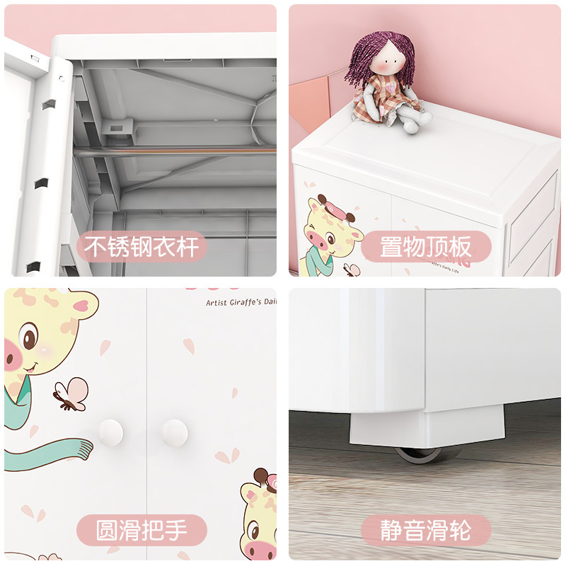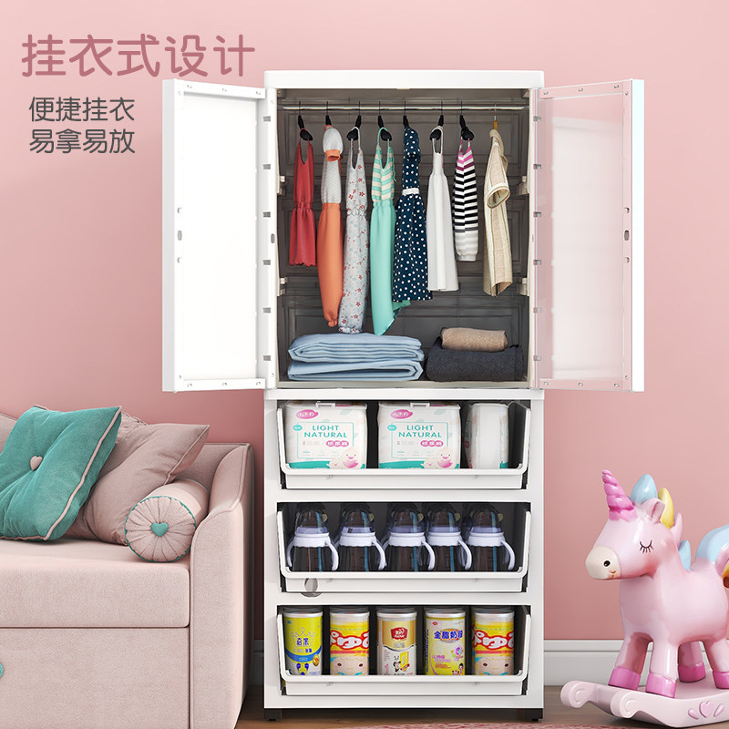 Simple Children Open Door Wardrobe Modern Minima Baby Household Plastic Containing Cabinet Baby Drawer Small Hanging Closet