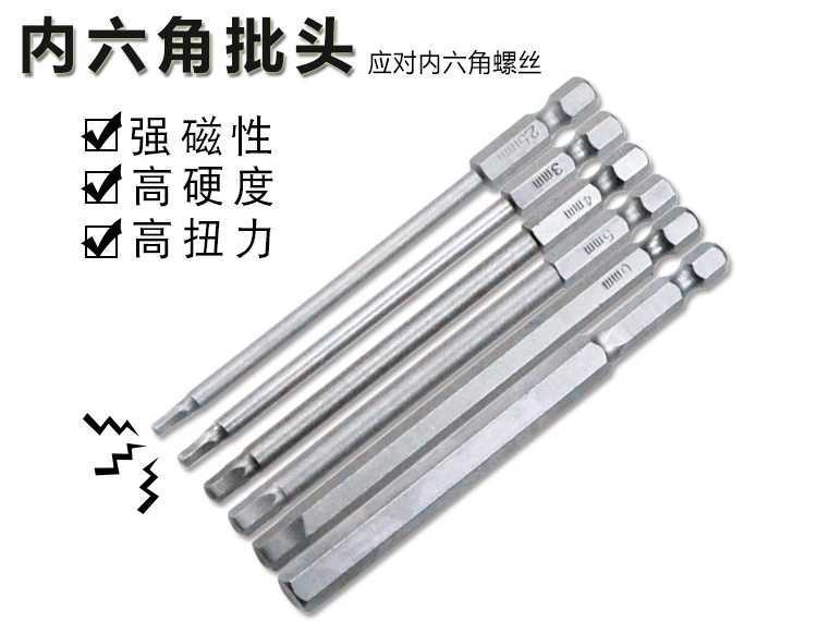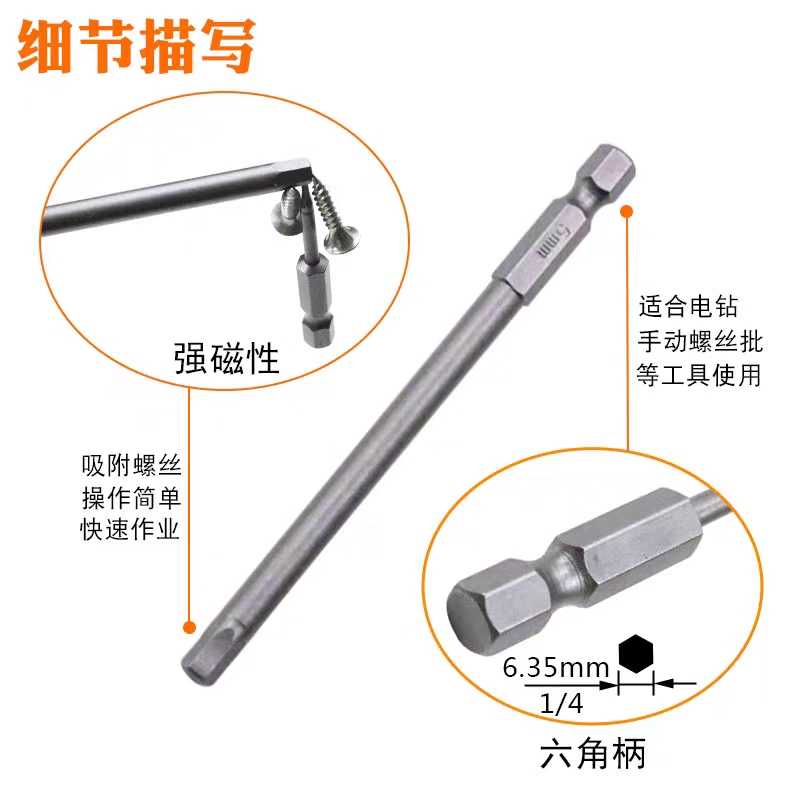 High carbon steel lengthened inner hexagonal batch head wrench electric drill pneumatic screwdriver sleeve with magnetic screwdriver head hibiscus twist drill