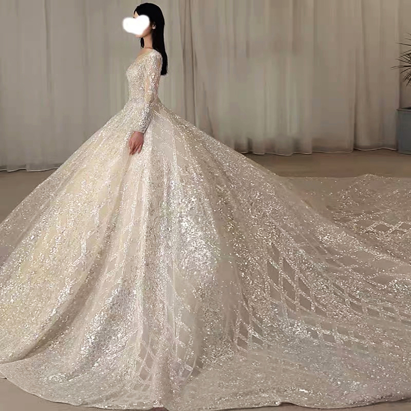 French wedding dress 2023 new bride main yarn long sleeve dress small size retro - tail sentiment