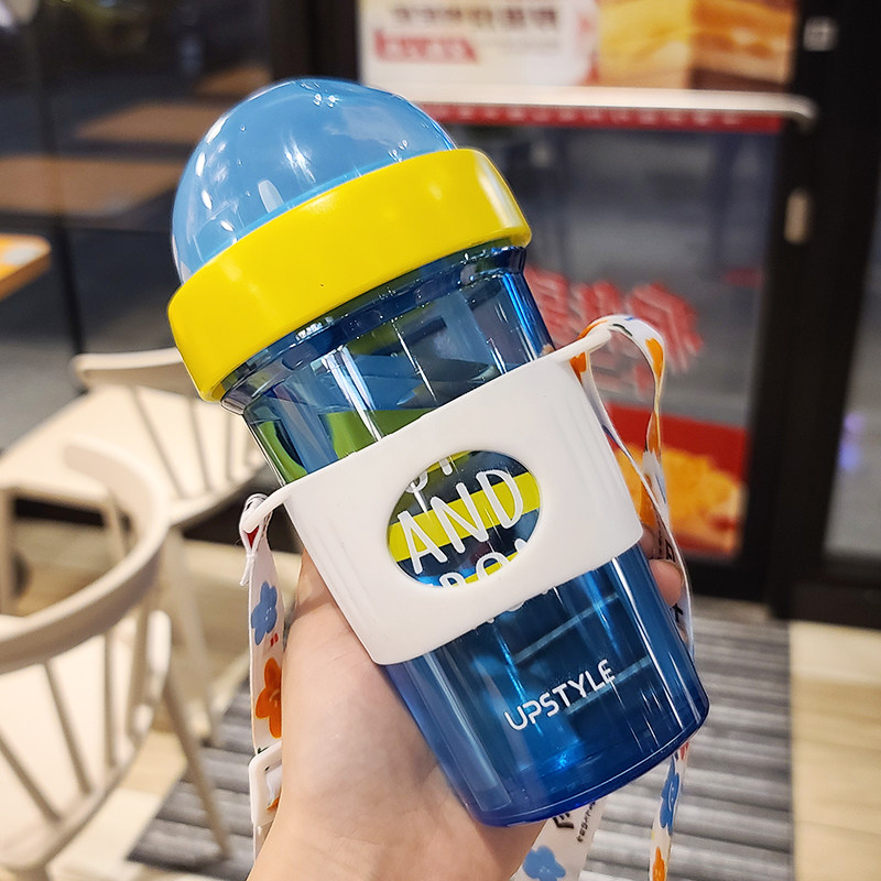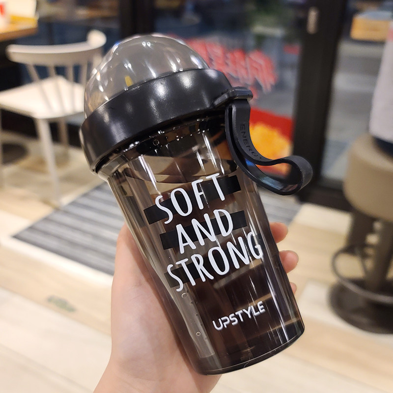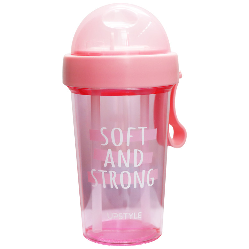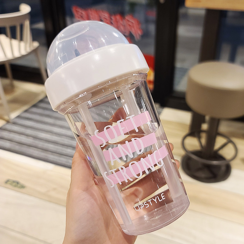 Net Red Double Drink Cup With Straw Brief Water Glass Female Summer Portable Students Ins Wind Small Frescoed Plastic Cup Anti-Leak