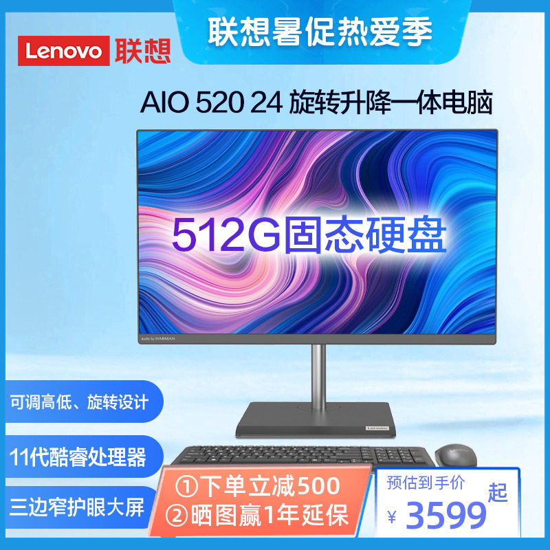 Lenovo all-in-one machine AIO520 AIO520 24R rotary lifting all-in-one machine desktop computer all-in-one machine home learning office desktop online course all-in-one computer