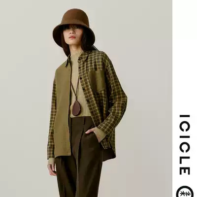 ICICLE of grass women 21 autumn and winter new cotton wool blend double-sided cloth loose shirt Women's 1212C2035501